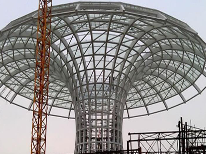 二、球形网架结构因其结构新颖,受力合理,自重轻、用钢量低等优点。如大型体育场馆球形乌兰浩特螺栓球网架、公共场馆球形网架、电厂乌兰浩特螺栓球网架、水泥工业球形网架、仓储物流球形网架、乌兰浩特干煤棚工业球形网架、乌兰浩特收费站乌兰浩特加油站球形网架、展览中心、影剧院、商场、航站楼、候车厅、工厂乌兰浩特车间、仓库、电视塔等球形螺栓球节点网架。国内球形网架结构主要分为:乌兰浩特焊接球节点网架及螺栓球节点网架两种。螺栓球节点网架其构件工厂内加工量较大,现场安装便捷,适用于现场工期紧,乌兰浩特施工条件、用电量受制约,网架形状复杂、乌兰浩特杆件定位困难的异形结构。螺栓球节点球形网架系统基本由乌兰浩特杆件、螺栓球、支撑支座等组成。按照节点形式可分为交叉乌兰浩特桁架体系、四角锥体系、三角锥体系等。支撑方式多为固定支座支撑。对于大面积、大跨度及有特殊受力或伸缩要求的网架结构可采用橡胶支座、滑移支座、球铰支座等支撑形式,以满足结构自身的受力稳定、均衡,便于内力释放等设计要求。